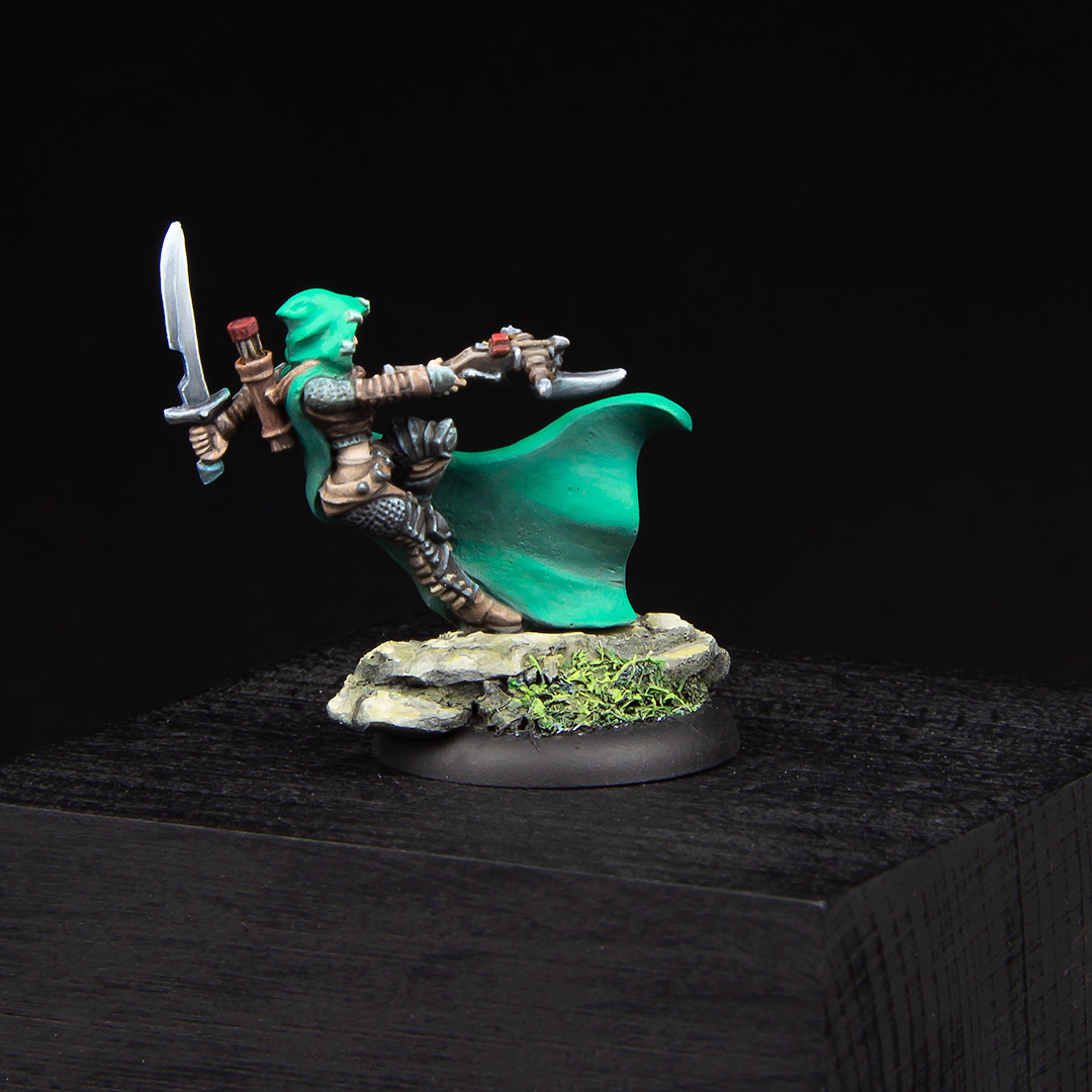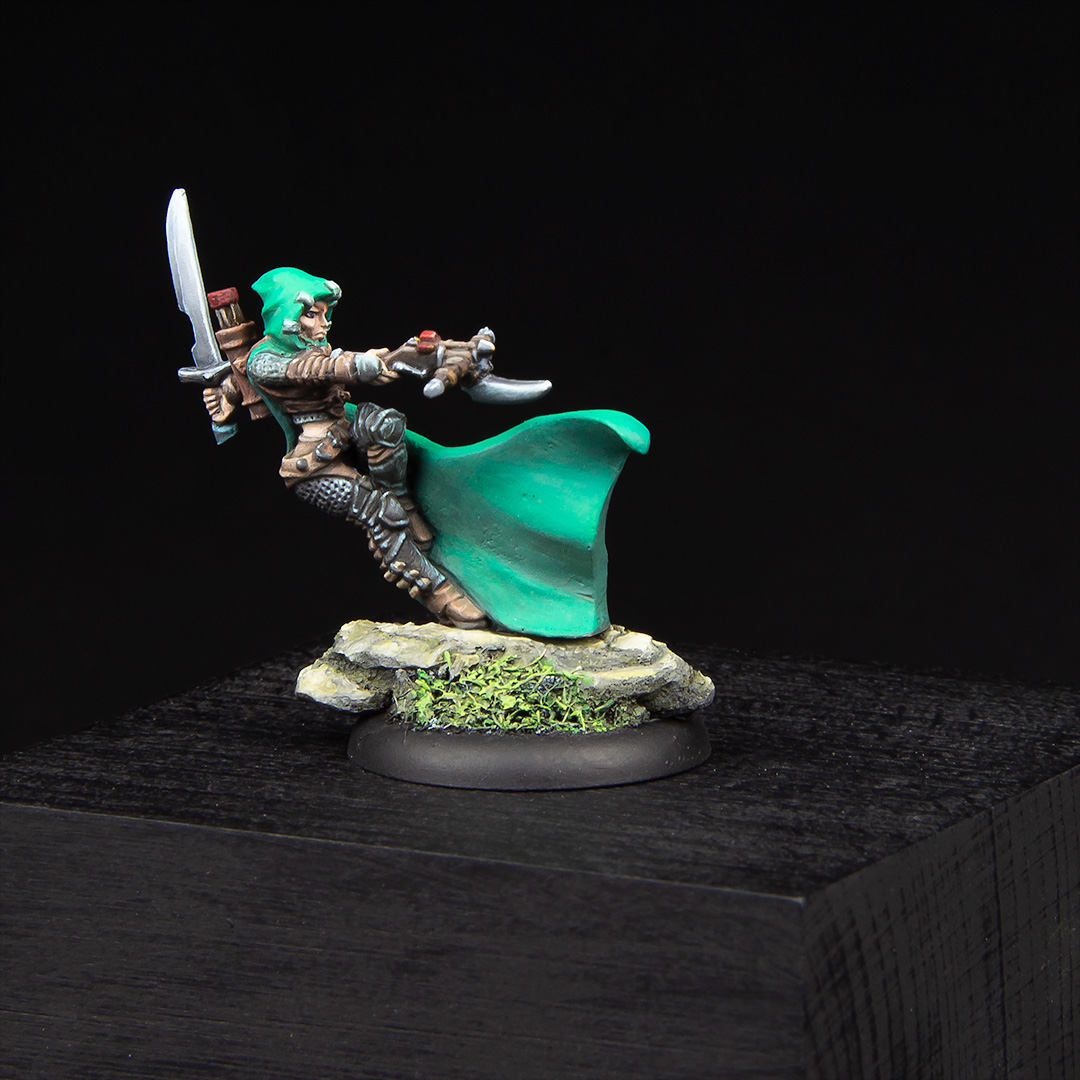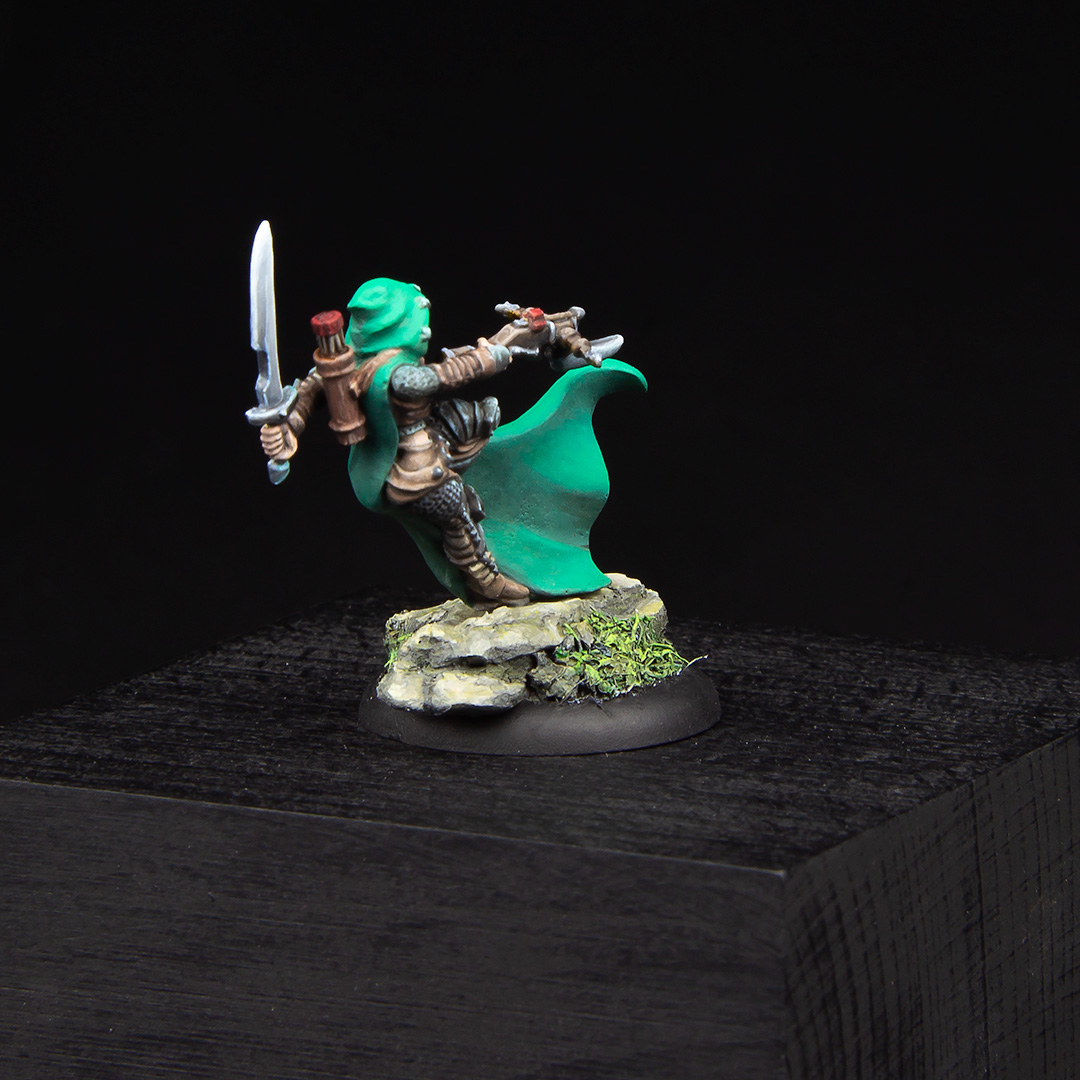 Eiryss, Mage Hunter of Ios is a commission work for a fellow Warmachine player. The aim was to give her a vividly coloured cape, but at the same time to place her in a realistic environment and make her look natural.