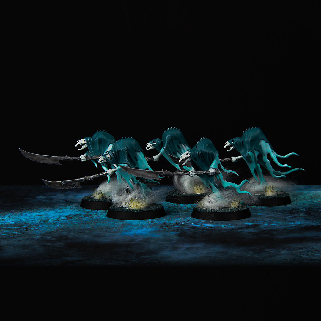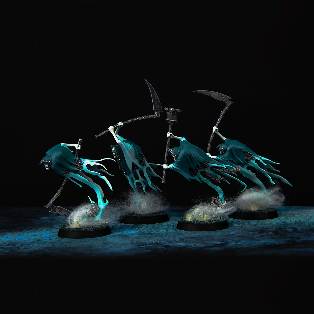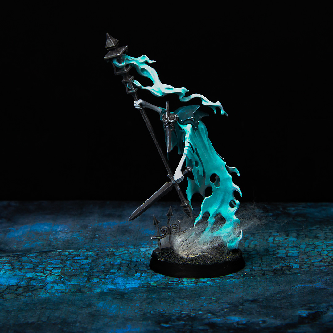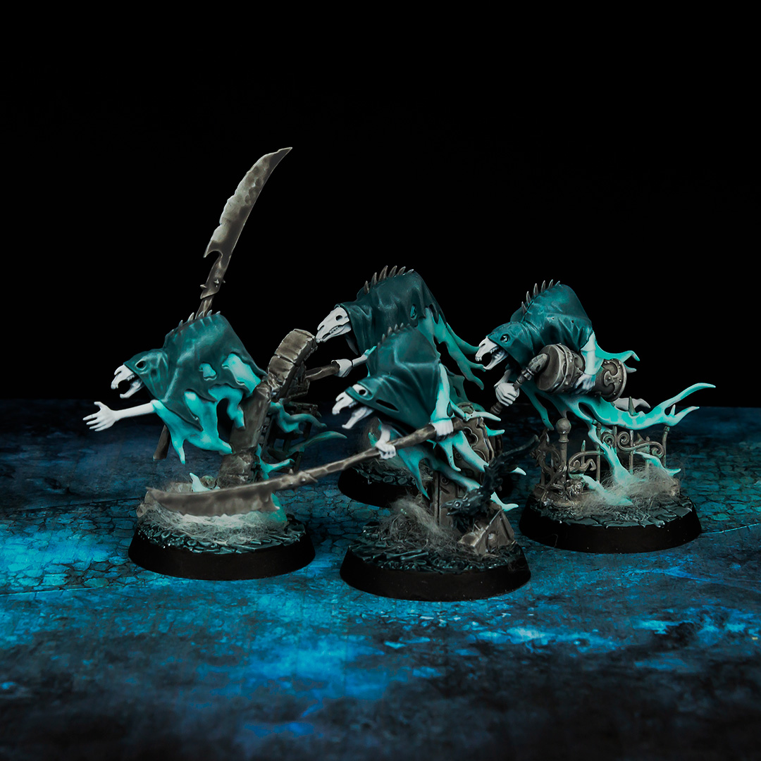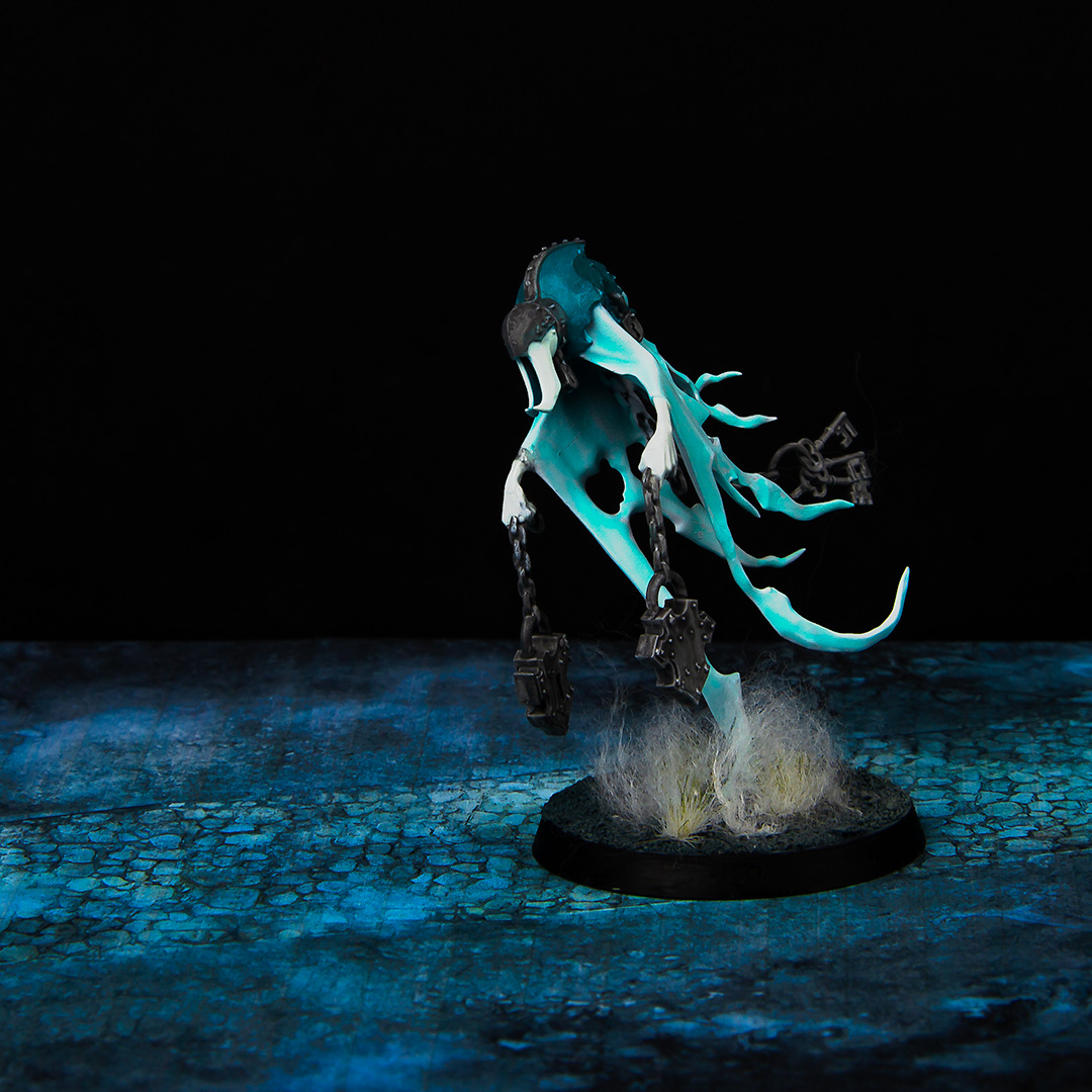 Speed! I didn't have much time to get a few models ready for a small match, so the premise was to paint everything as simple and fast as possible. I limited myself to only 3 colors plus white and started. Due to the characteristic of the gel-like paint of Warcolours, smooth gradients and a nice contrast were quickly formed. With a little bit of cotton I spiced up the base and that was it.
